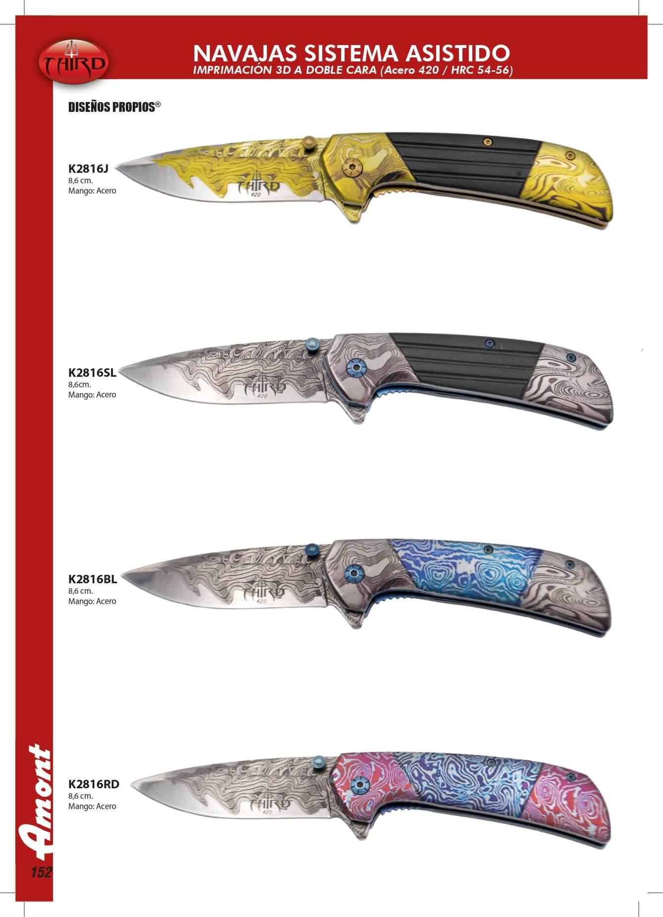 Coltelli da tasca con sistema di apertura assistita. Decorato con stampa 3D. Foglio da 8,6 cm. Manico in acciaio.