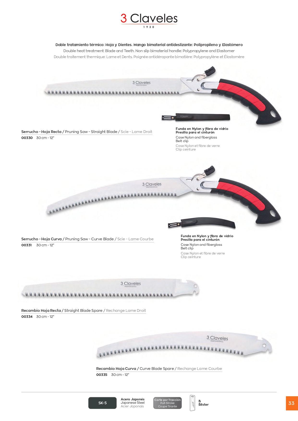 Sega a lama dritta intercambiabile 3Claveles da 30 cm con fodero
