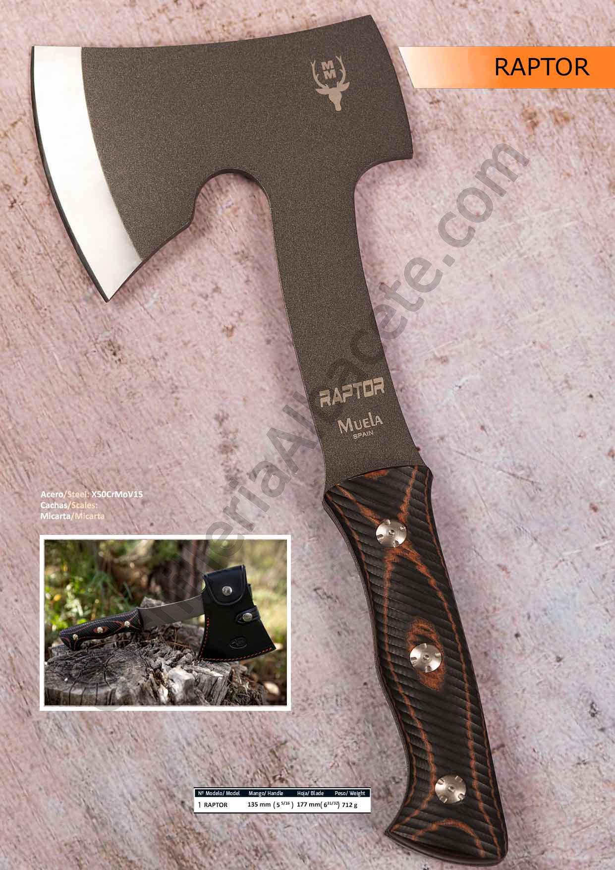 Lama in acciaio al molibdeno vanadio con rivestimento antifrizione in PTFE. Manico in micarta testurizzata. Lunghezza totale 31,5 cm. Spessore lama: 5,5 mm. Peso 690 gr.