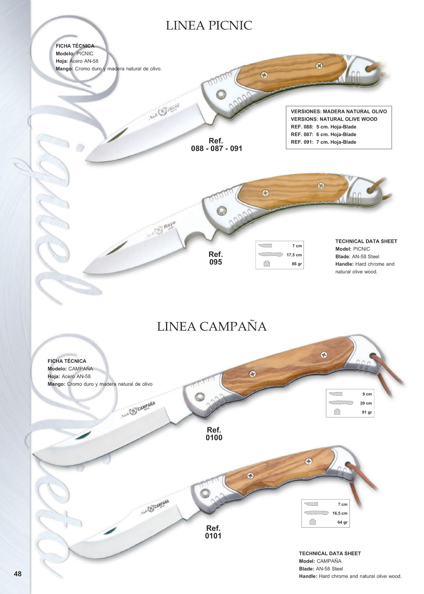 AN58 lama in acciaio, cromo duro manico in legno naturale di oliva.