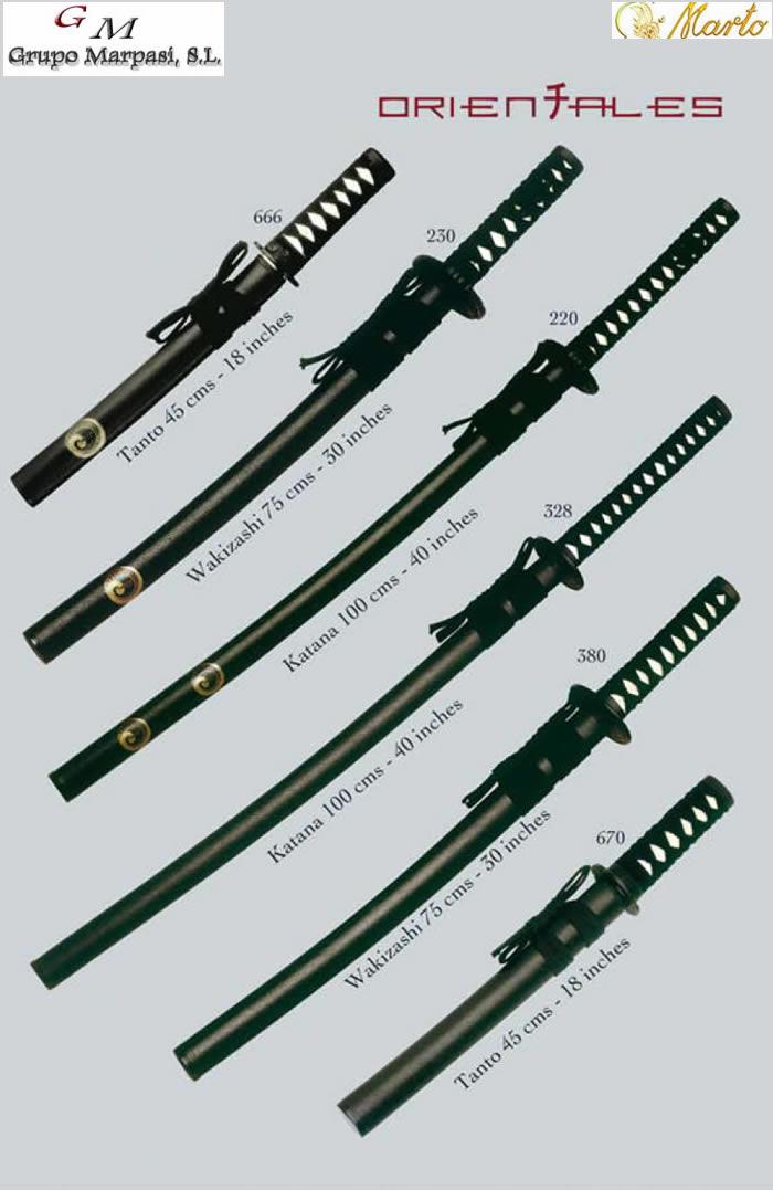 Spade Orientale220 Katana. 230 Wakizashi. 666 Tanto.328 Katana. 380 Wakizashi. 670 Tanto.