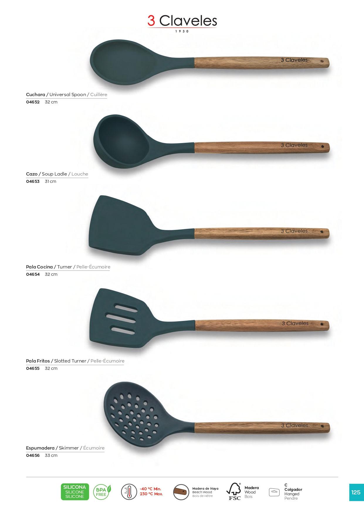 Cucchiaio da portata in silicone e legno di faggio 3 Claveles, se...