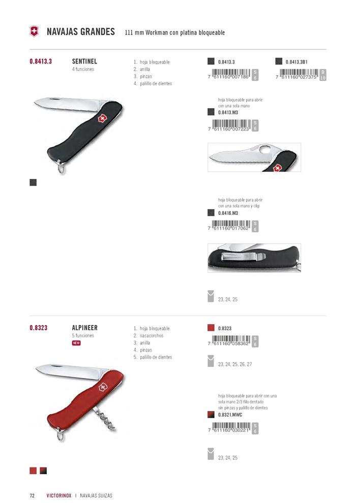 Stesse caratteristiche del coltello Sentinel ma con una lama grande con chiusura a una mano. Peso: 73 gr.
