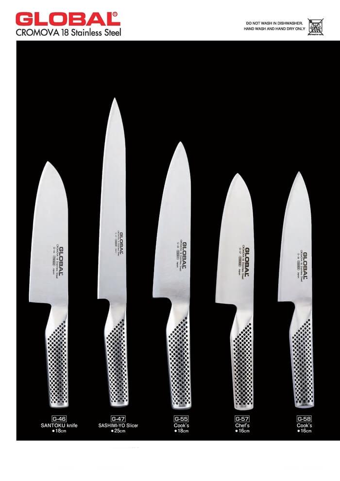 Globale japanische einteilige Messer. CROMOVA 18 Edelstahlklinge, dieser Stahl mit hoher Chromzusammensetzung hat eine hohe Oxidationsbeständigkeit und eine Härte von 56º-58º HRC.