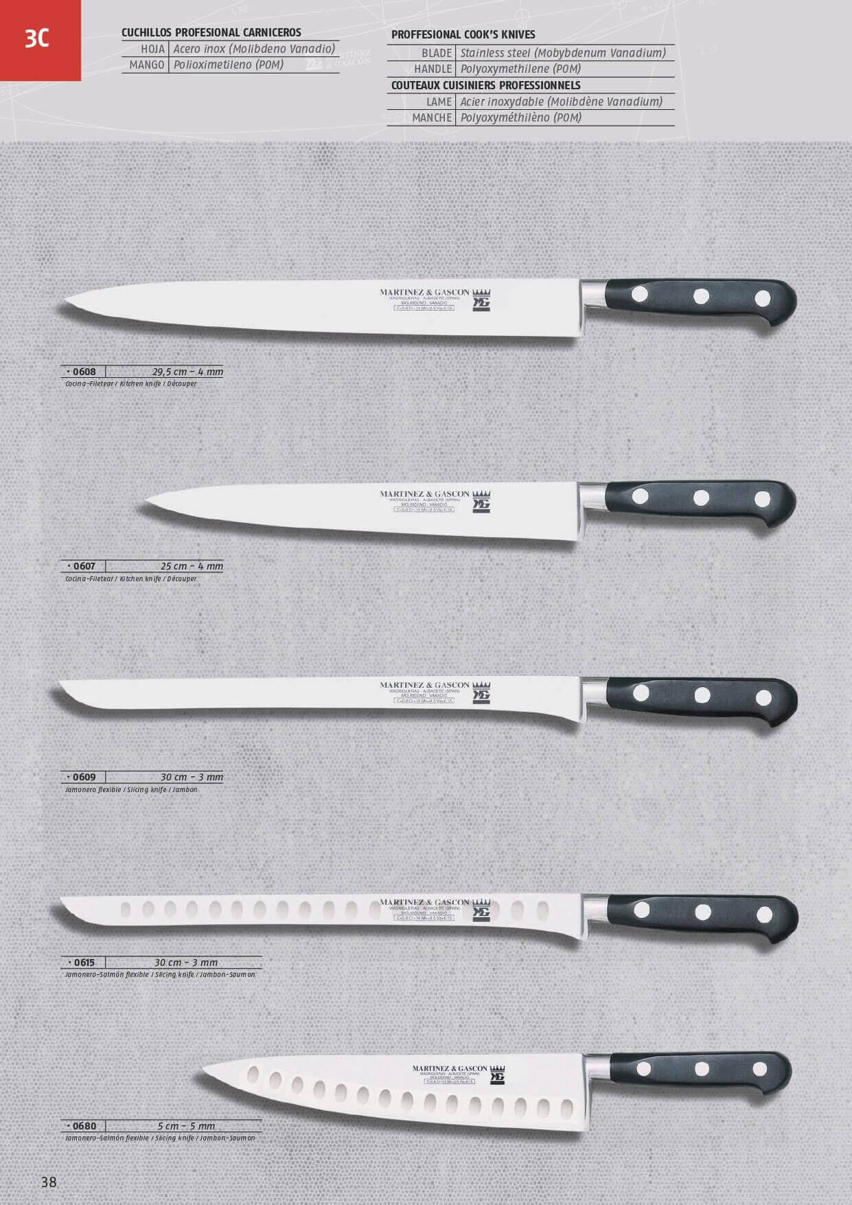 Geschmiedetes Schinkenmesser mit 300 mm Klinge Martinez und Gasco...