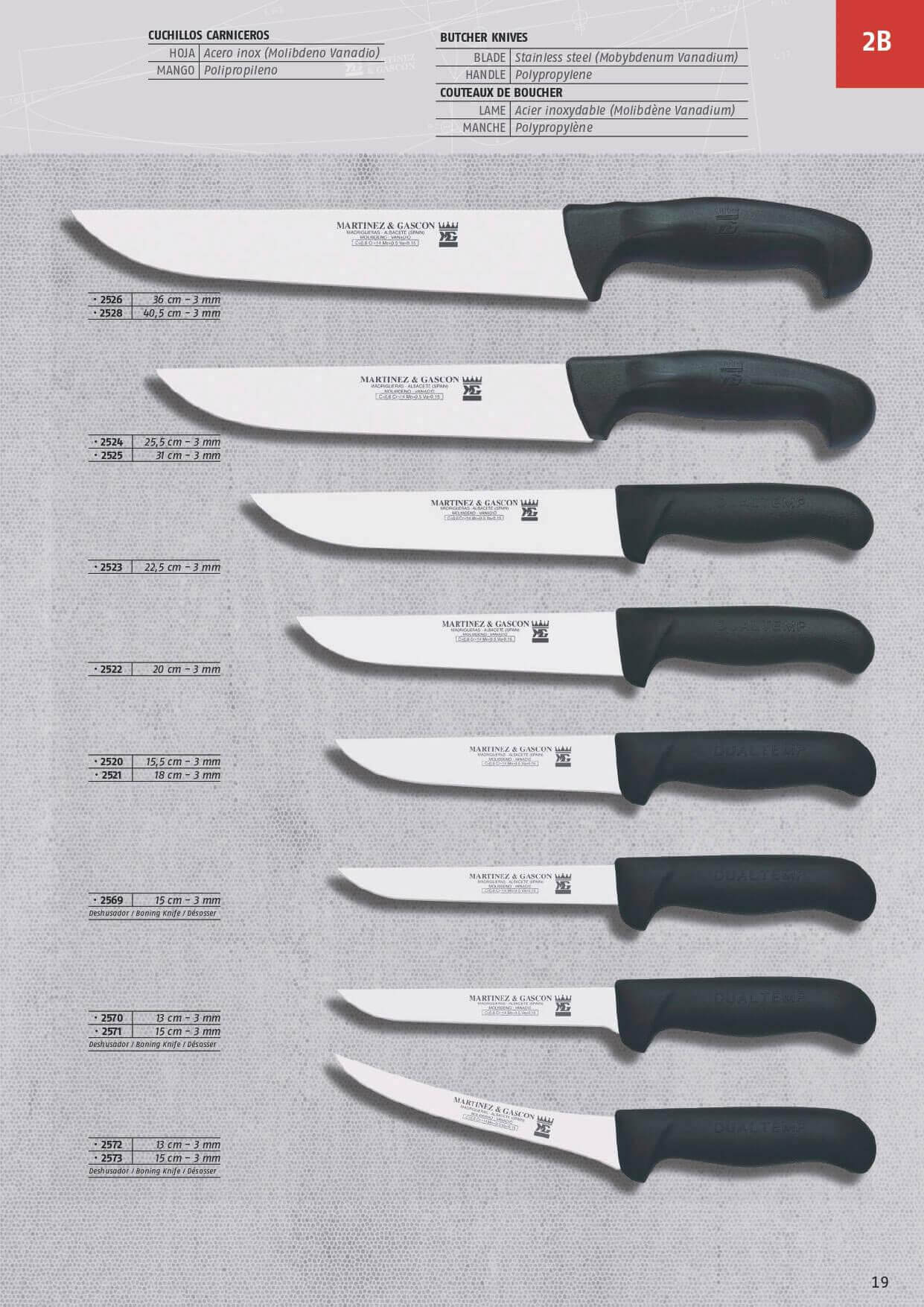 Klinge aus rostfreiem Edelstahl. Polypropylen Griff.