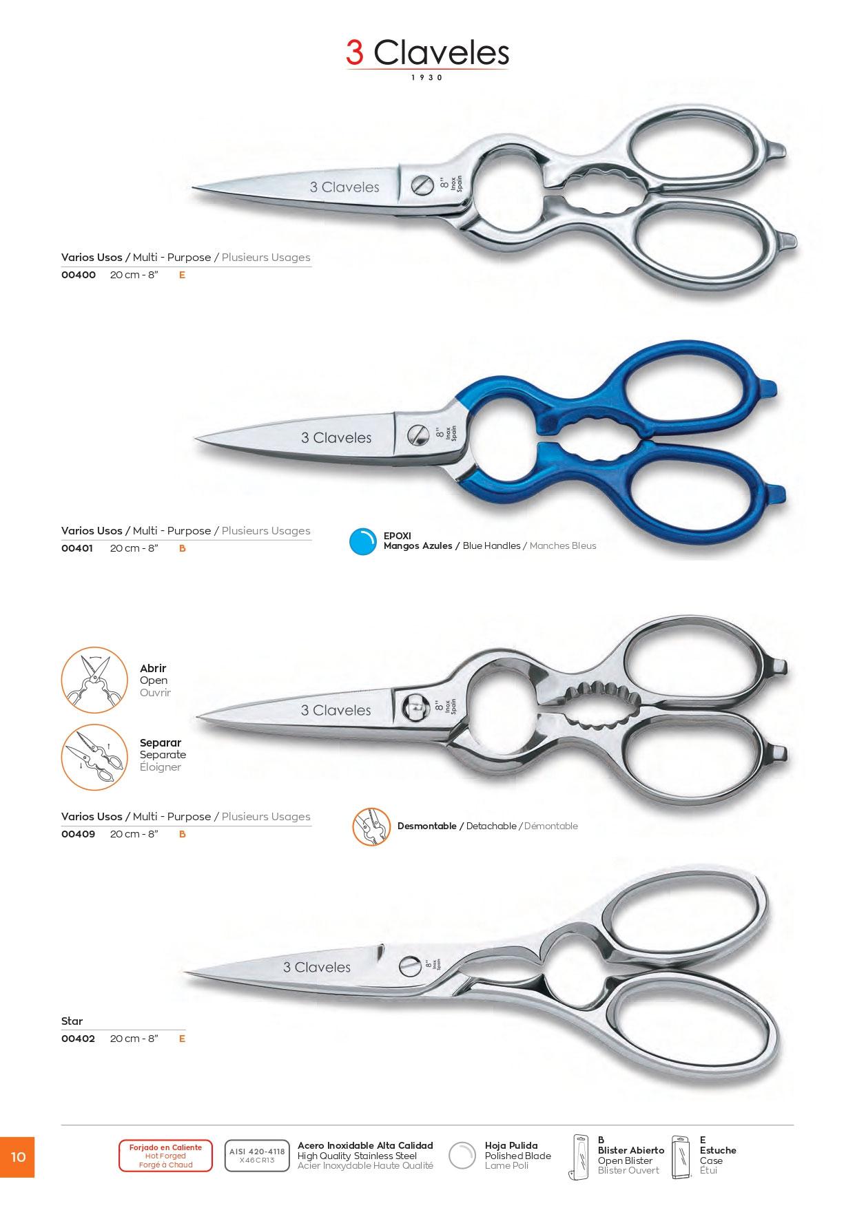 8-Zoll-Mehrzweck-Küchenschere aus Edelstahl mit blauem Griff