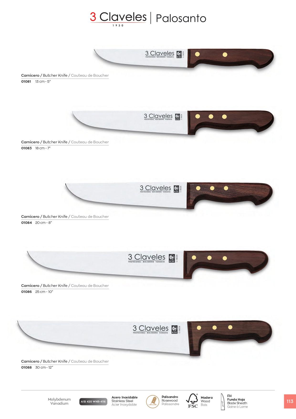 30 cm langes Fleischermesser mit Rosenholzgriff, 3 Claveles