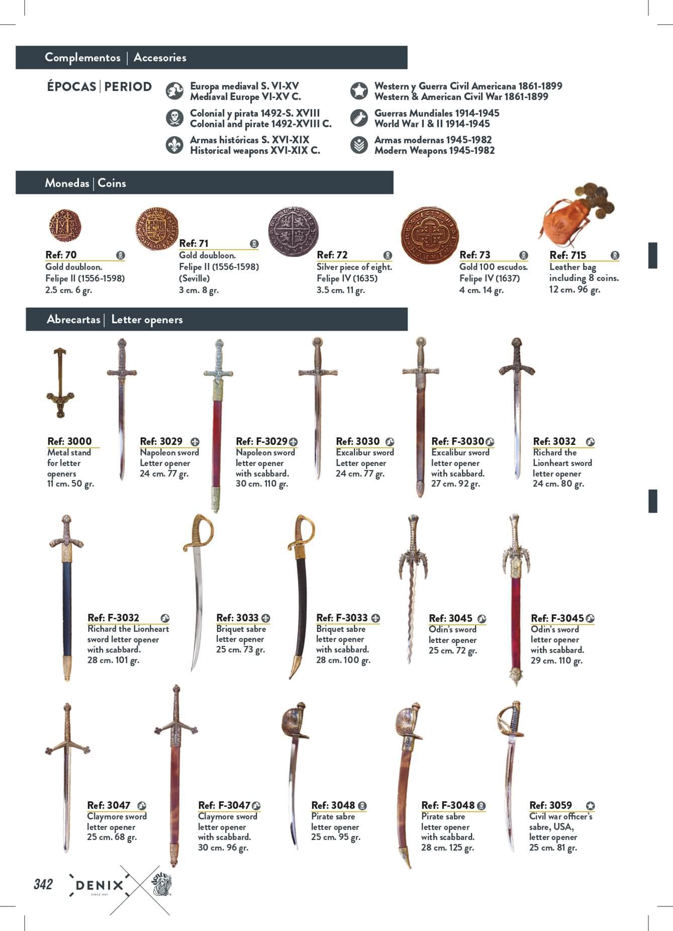 - F-3029: Napoleon-Schwert mit Scheide. Gewicht: 110 gr. Gesamtlänge: 30 cm. (Historische Waffen S. XVI-XIX)