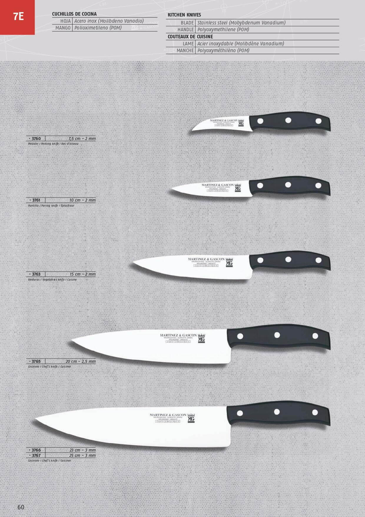 Küchenmesser mit Molibdeno Vanadio Edelstahlklinge. Griffe aus Polyoxymethylen (POM).