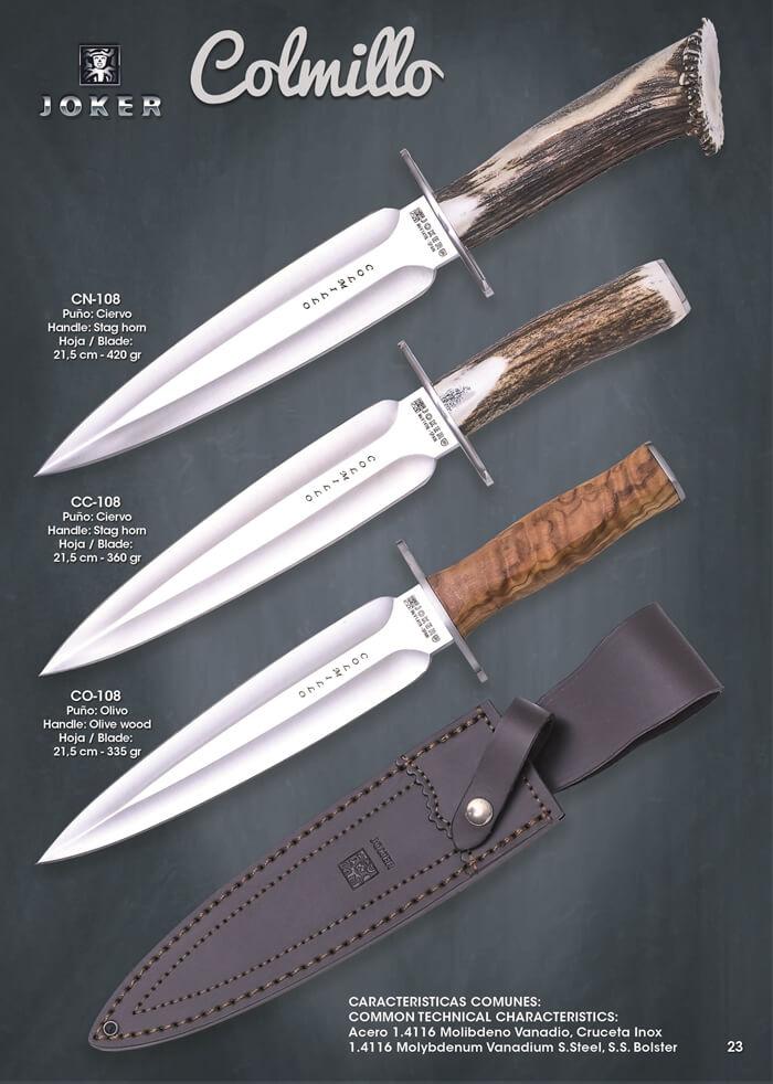 Colmillo Joker Messer Schüsse und zweischneidige Klinge.