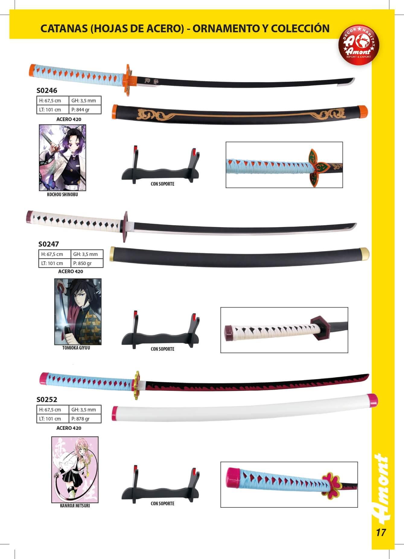 Katanas Demon SlayerKlingenlänge: 67,5 cm. Gesamtlänge: 101cm. - S0246: Kochou Shinobu - S0247: Tomioka Giyuu - S0248: Kanrojimitsuri Katanas beinhalten Unterstützung.