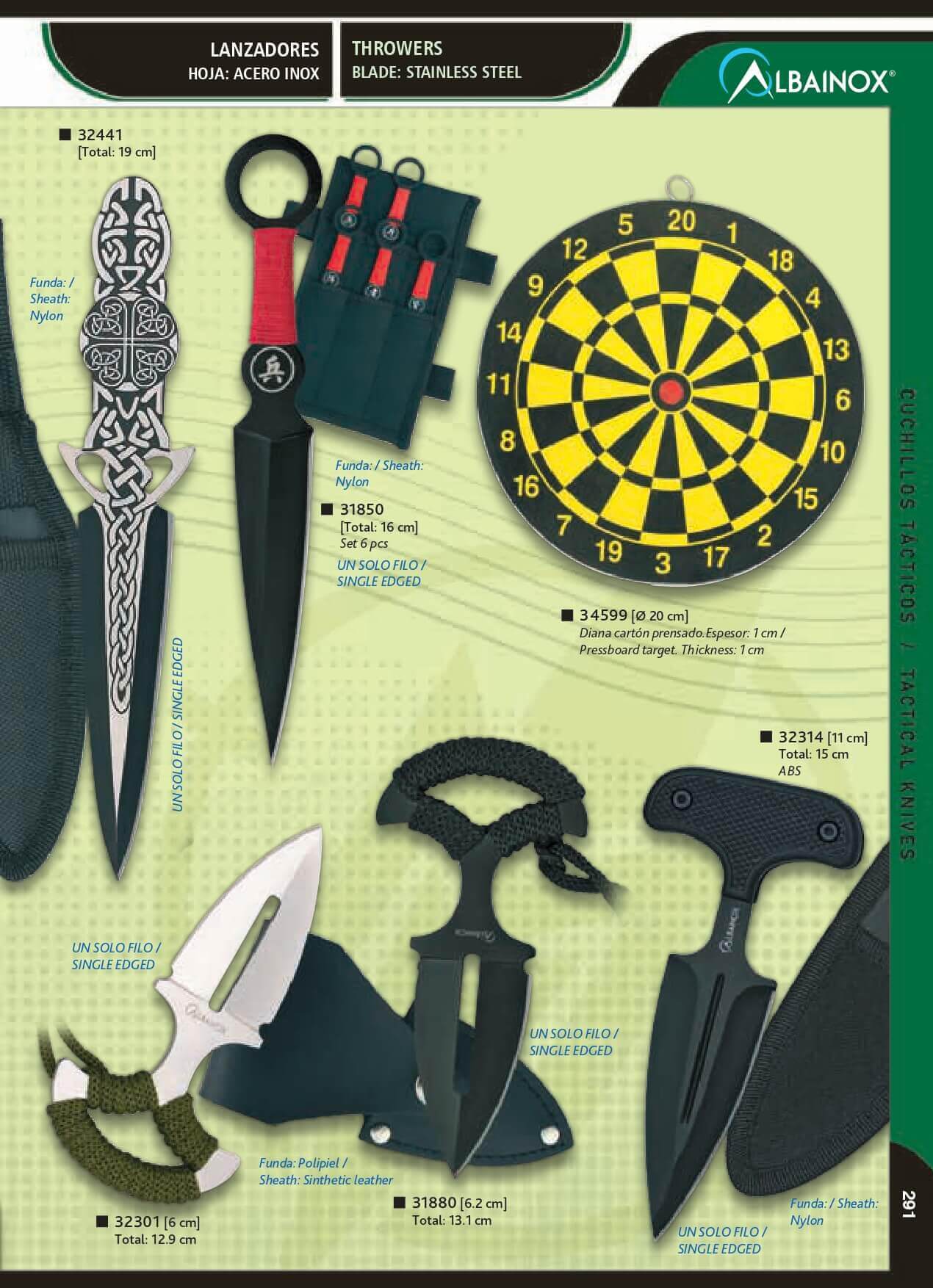 Set aus sechs Albainox-Wurfmessern mit einer Gesamtlänge von 6 cm