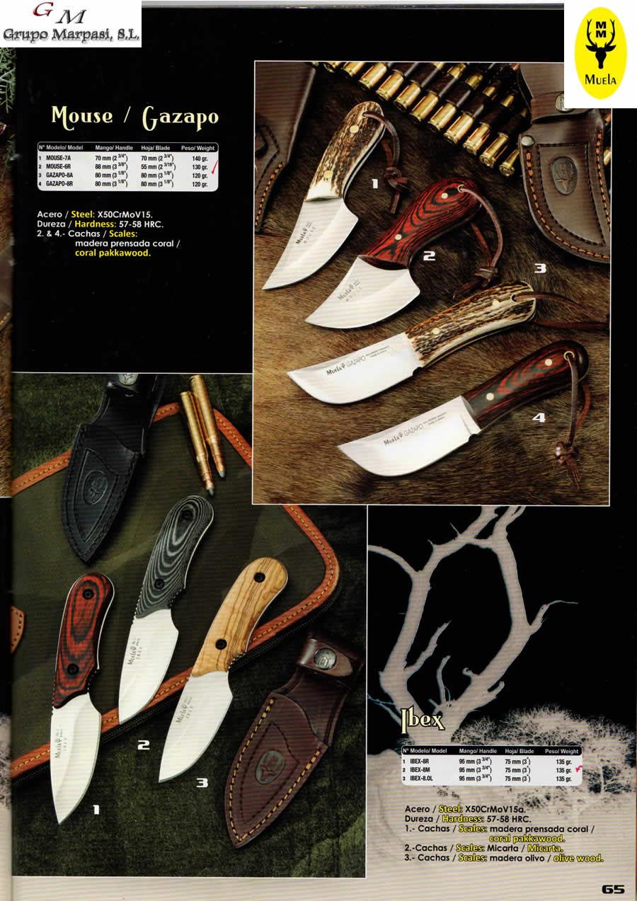 Enthäutungsmesser mit 7,5 cm Klinge. Gewicht: 135 gr. Grifflänge 9,5 cm. Griffe aus gepresster Koralle, Micarta oder Olivenholz.