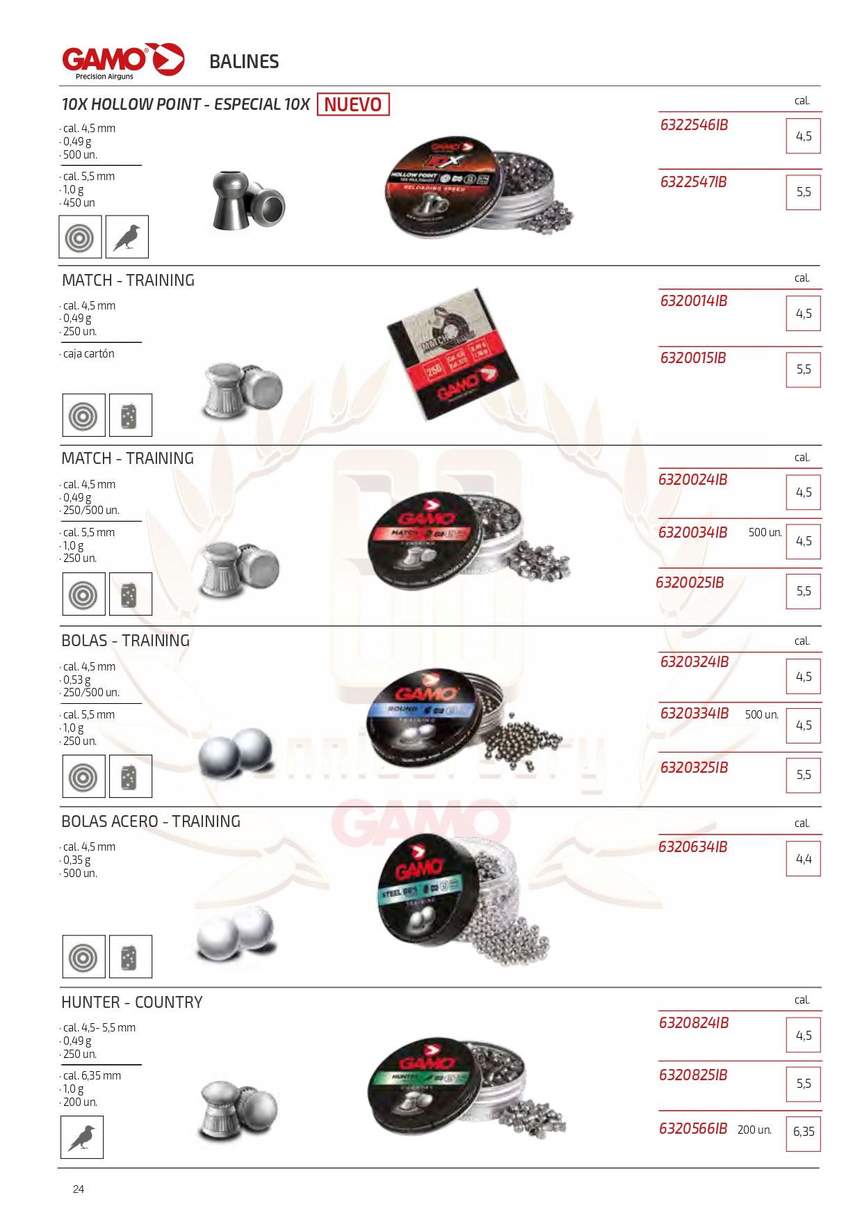 Kal 4,5 (6320824) y 5,5 mm (6320825): 0,49 gr. 250 ud.