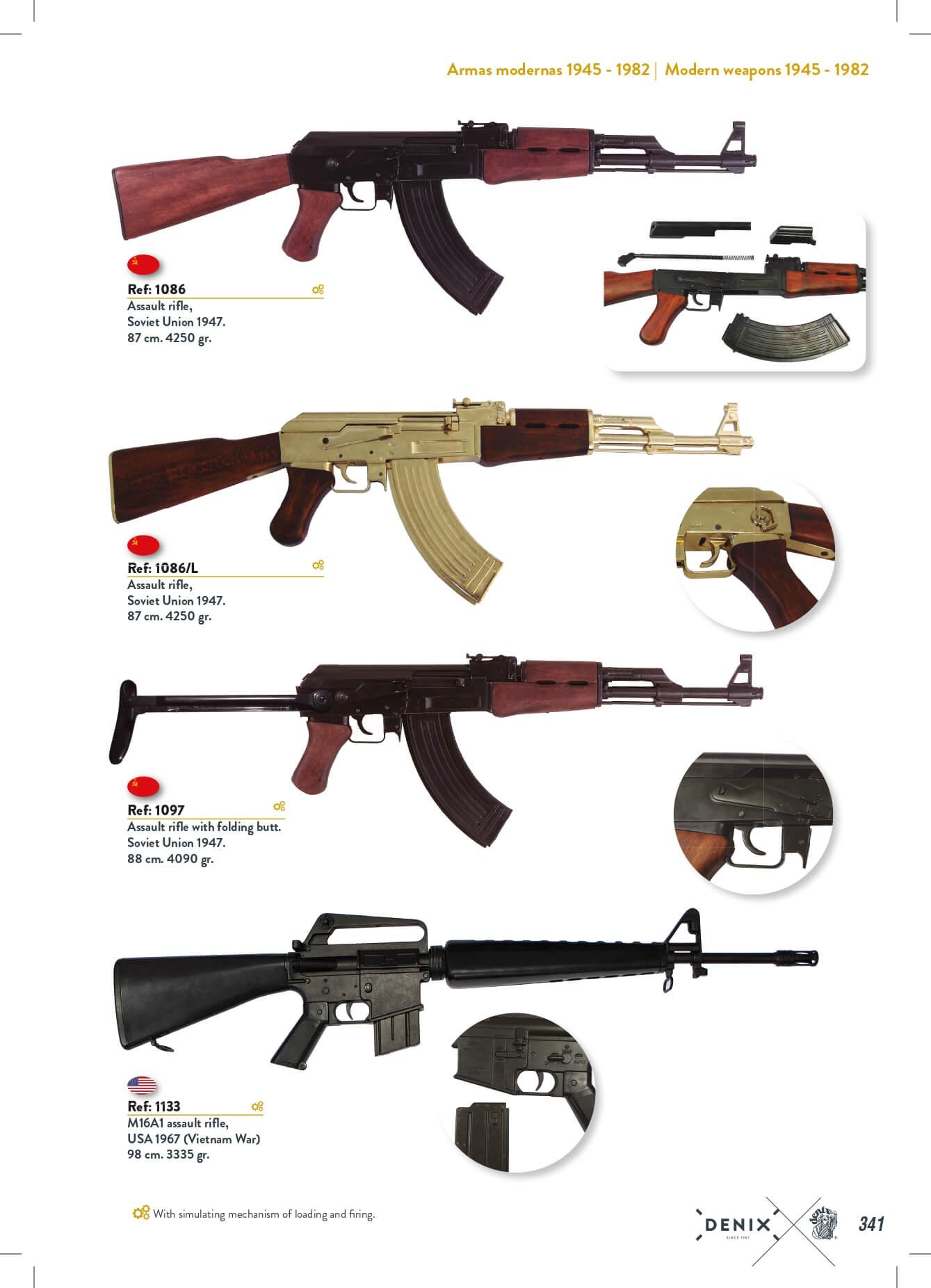 Maschinengewehre und Schrotflinten mit Ladungs- und Schusssimulationsmechanismus.