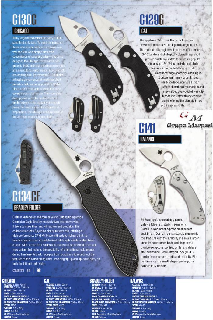 Tactical Einhandmesser Value Folders.C130G - Spyderco Chicago messer.C129G - Spyderco Cat.C134CF - Spyderco Bradley Folder.C141 - Spyderco Balance.