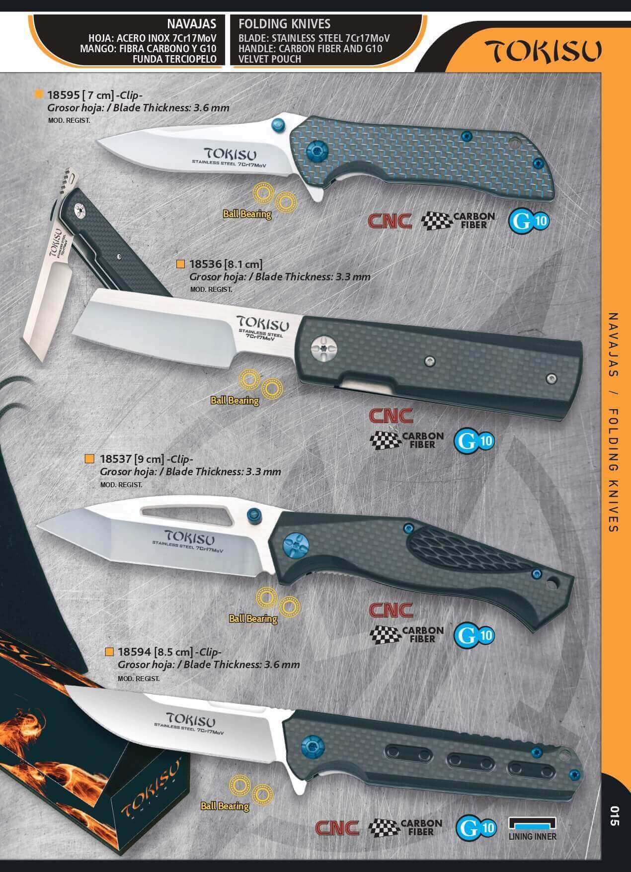 Klinge aus rostfreiem Stahl, Griff aus Kohlefaser und G10. Mit kugelgelagertem Verriegelungssystem. Inklusive Samtbezug.