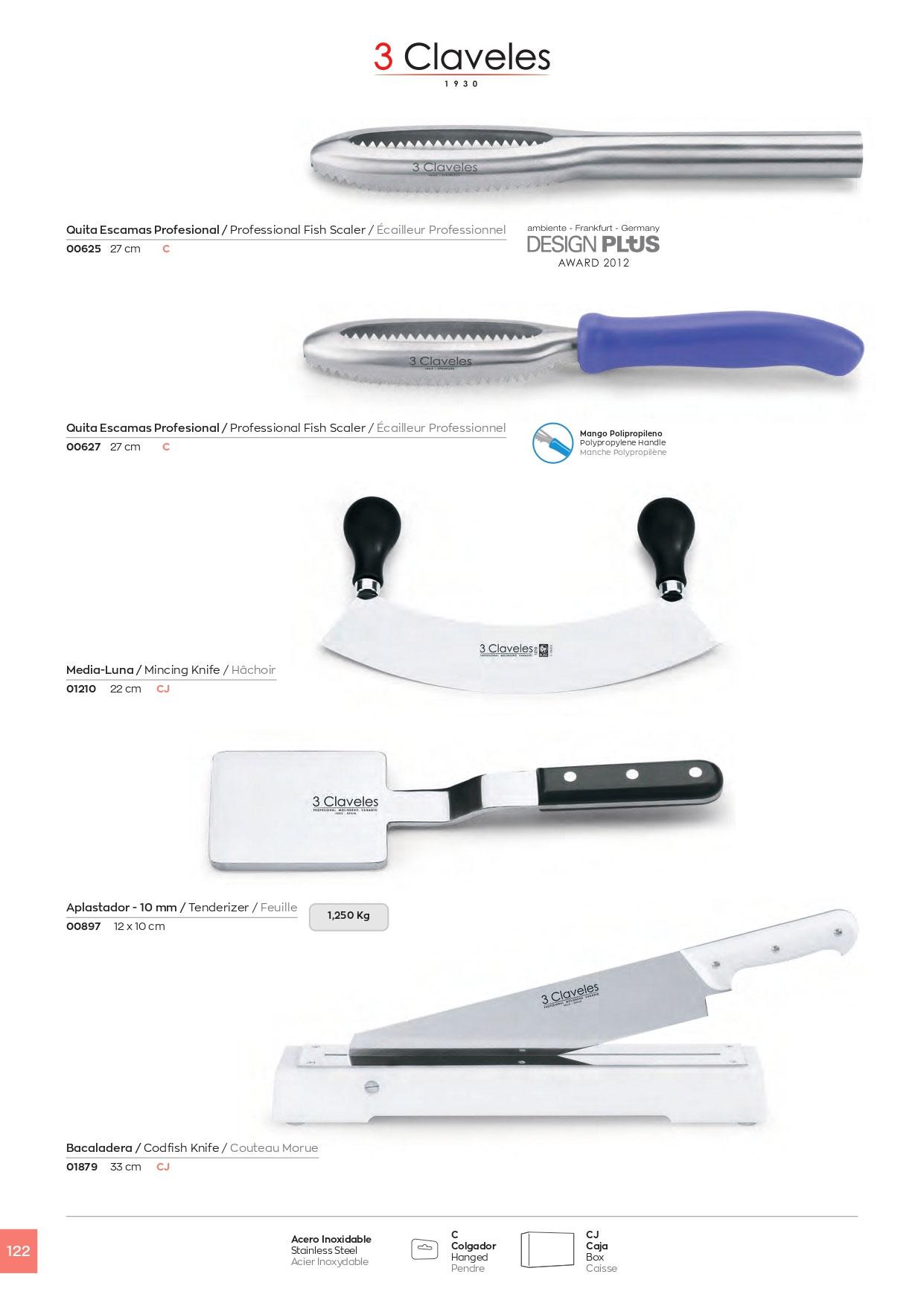 Küchengeräte. Professioneller Kalkentferner. Halbmondmesser. Kabeljau-Messer.