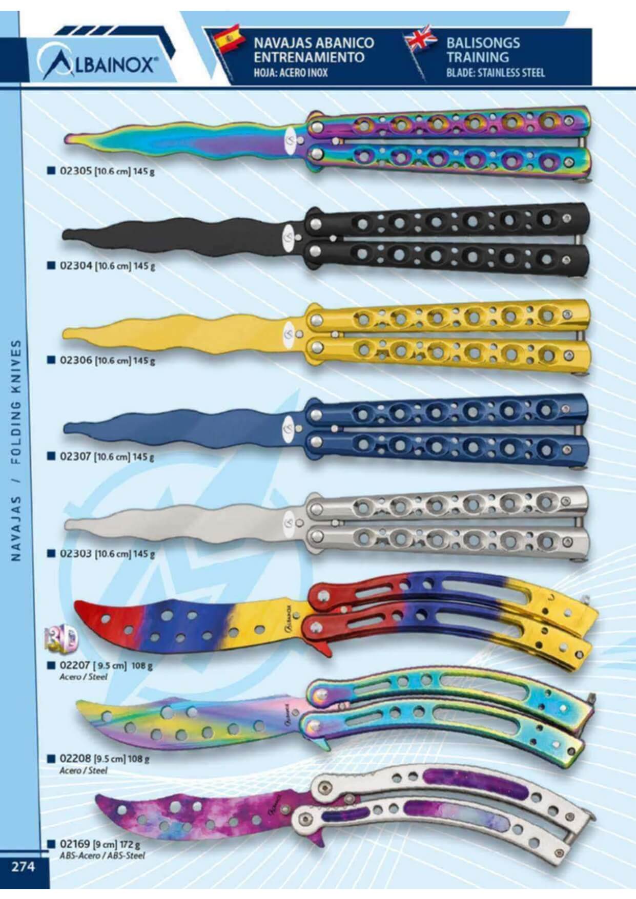 ALBAINOX Colorful Training Balisong mit 9,5 cm langer stumpfer Klinge